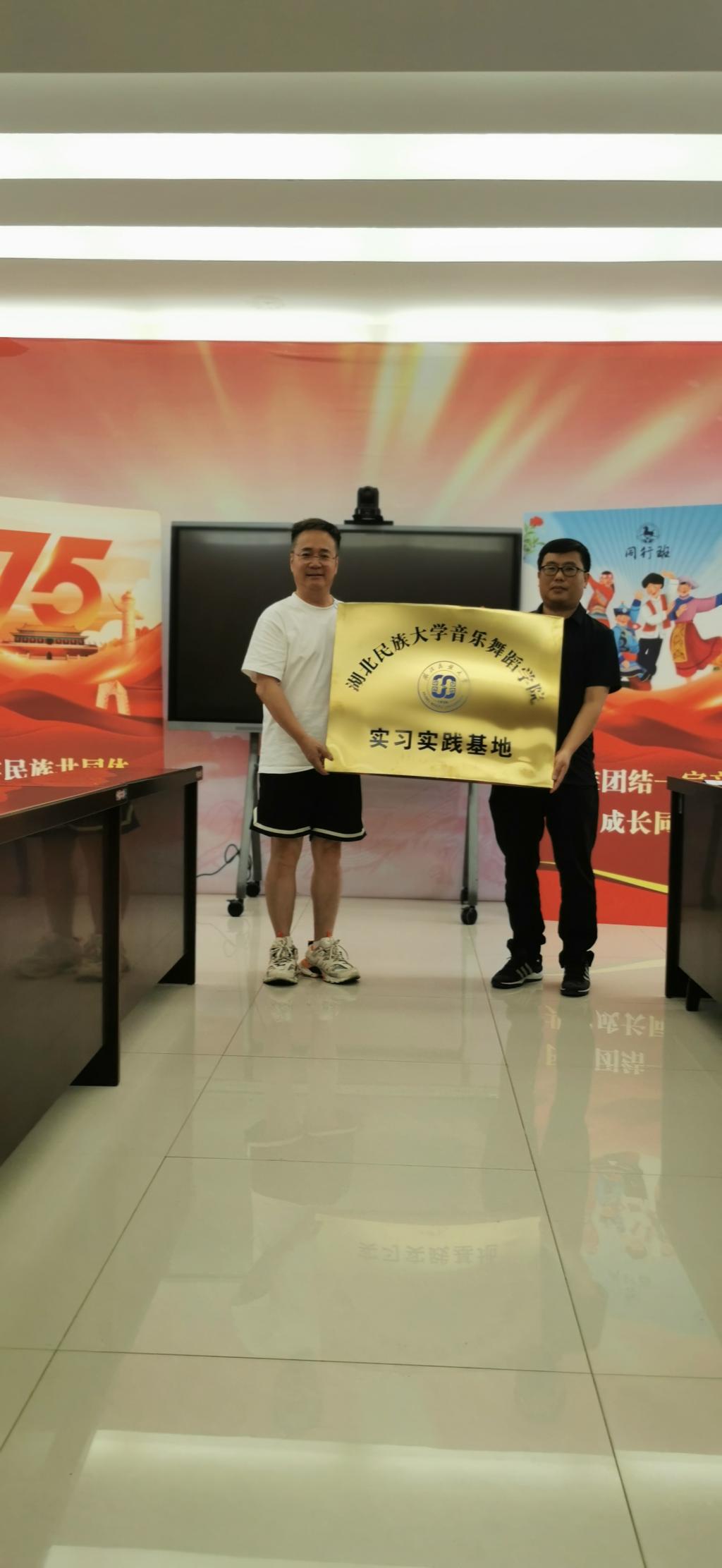 王松副院长授予利川市民族中等职业技术学校“bat365在线中国登录入口音乐舞蹈学院实习实践基地”牌匾