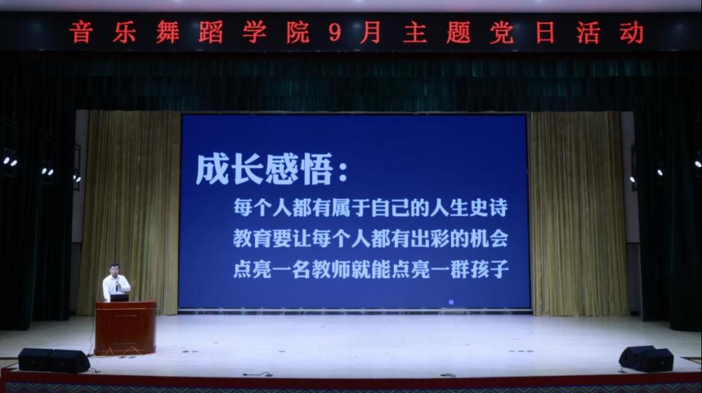 9月26日,音乐舞蹈学院教工党支部和学生党支部联合开展“学榜样、做榜样、立足岗位做贡献”9月主题党日活动。本次活动由教工党支部书记焦娜同志主持。