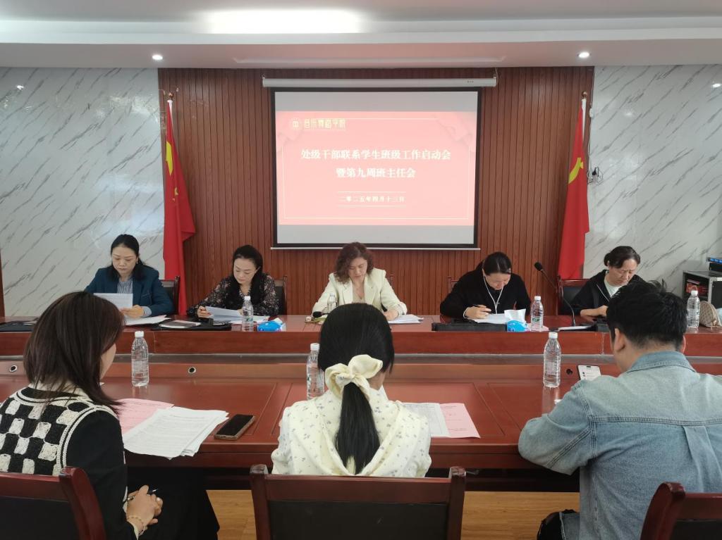 会上,学生科科长胡自爱领学《bat365在线中国登录入口处级干部联系学生班级工作方案》,明确工作目标及具体职责。随后,与会处级干部与联系班级班主任围绕班级管理、公寓日常管理、心理健康等实际问题进行讨论,处级干部结合工作经验进行深入交流,承诺将严格履行“四个一”责任。