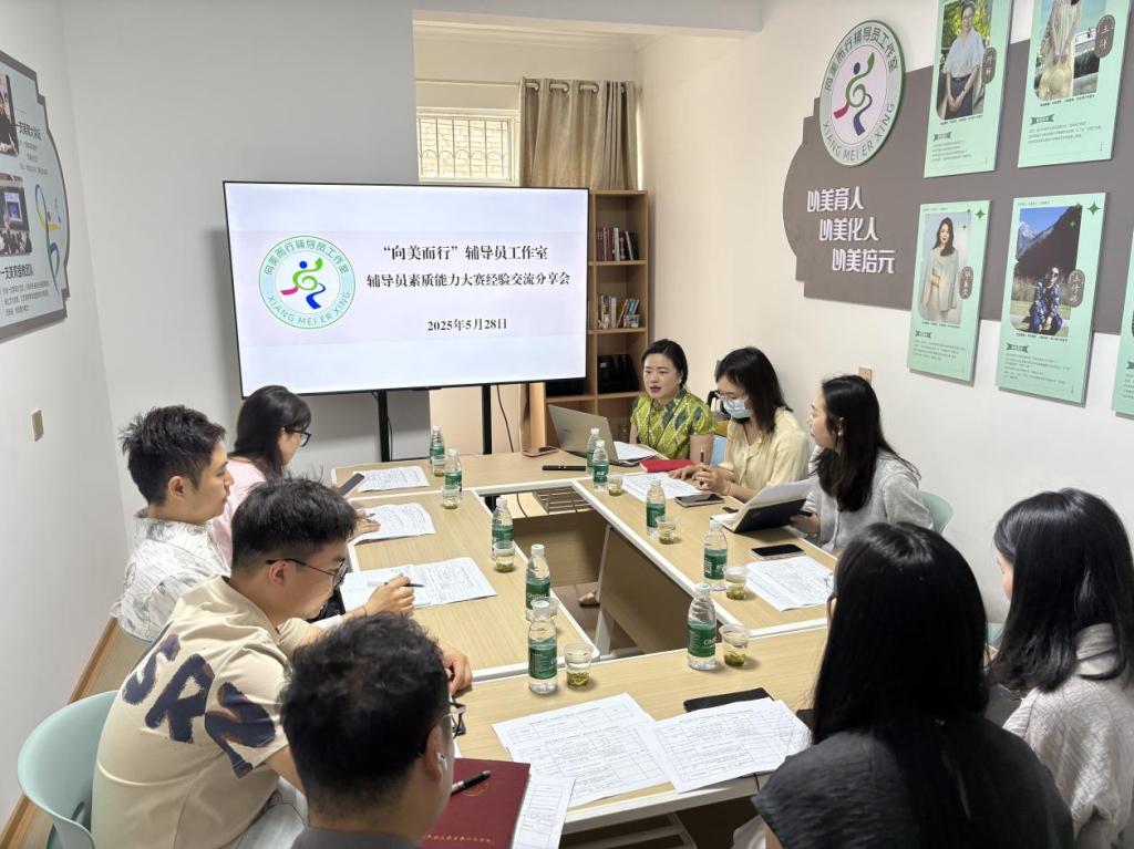 2025年5月28日,“向美而行”辅导员工作室在心语社区成功举办辅导员素质能力大赛经验交流分享会。来自文学与传媒学院、经济与管理学院、智能科学与工程学院、外国语学院、美术与设计学院、音乐舞蹈学院的10名成员参会,特邀bat365官网省级辅导员素质能力大赛三等奖获得者陈淑苗担任分享嘉宾。工作室负责人胡自爱主持会议。