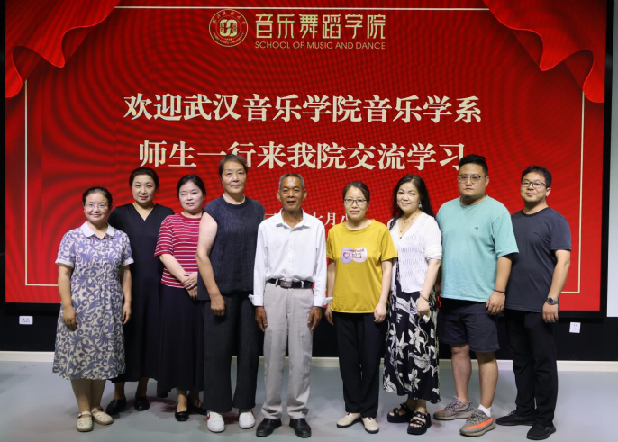 7月8日,武汉音乐学院音乐学系副书记李荣、许璐副教授、向清全博士、张颖博士、辅导员侯亮宇及2022级音乐学理论、戏曲音乐专业学生一行63人来我院交流学习,该活动由我院副院长焦娜主持,音乐系部分教师参加。