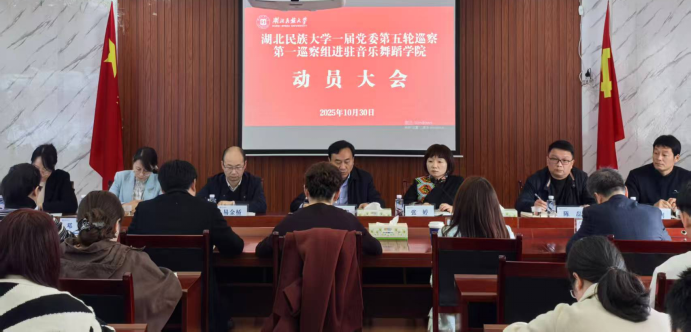 2025年10月30日,根据学校党委巡察工作统一部署,一届党委第五轮巡察第一巡察组在音乐舞蹈学院会议室召开巡察音乐舞蹈学院党总支工作动员大会。巡察组组长雷随斌及第一巡察组全体成员、音乐舞蹈学院领导班子成员及全体教职工参会。