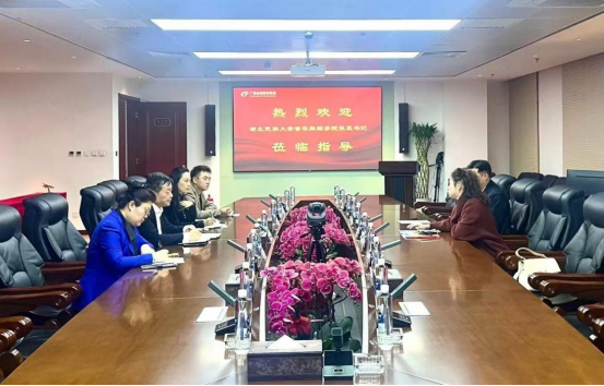 2025年11月13日,学院党总支书记张蕊带队赴广慧金通教育集团针对学生培养、实习、就业等相关事宜进行交流,开展校企合作深度洽谈。广慧金通教育集团总经理付晓军、常务副总经理李青谦及相关负责人出席了座谈交流。
