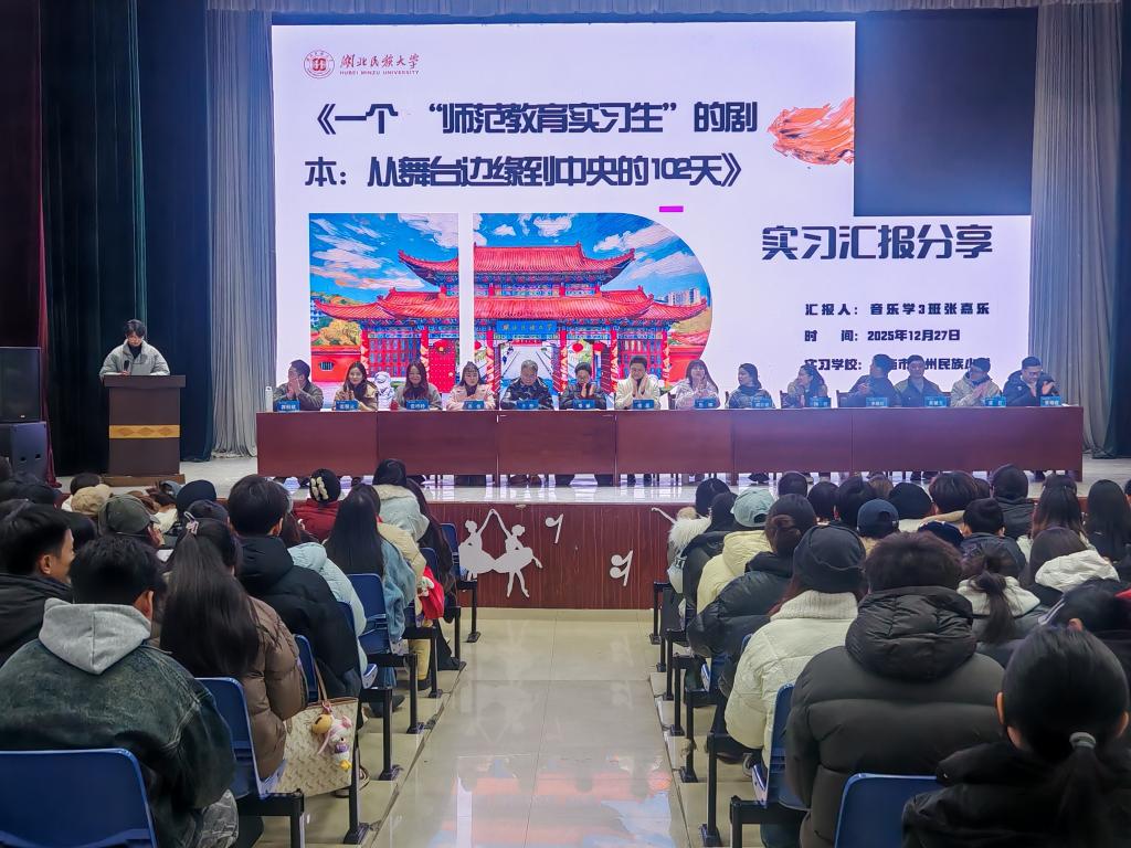 会上,实习生代表张嘉乐以《一个“师范教育实习生”的剧本:从舞台边缘到中央的102天》为题作实习汇报分享。实习生代表葛雅蓝鑫用生动的案例、真挚的情感,讲述了自己从初登讲台的紧张忐忑到从容驾驭课堂的成长蜕变。三个月实习时光里,他们从“旁观者”变为“参与者”,从“学习者”成长为“教者”,用实际行动诠释了师范学子的责任与担当,赢得了现场阵阵掌声。