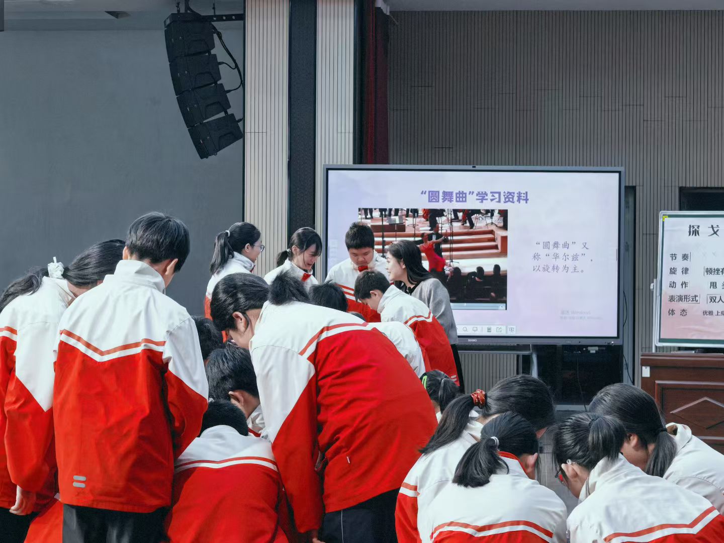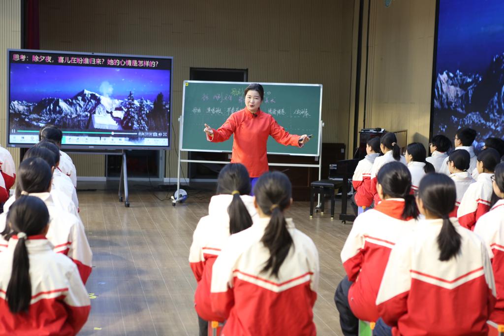 随后,全体参会人员沉浸式观摩了三节高品质示范课。清江民族学校陈新老师执教单元整体教学《缤纷舞曲》,以《蓝色的探戈》《雷鸣电闪波尔卡》《溜冰圆舞曲》三首作品为载体,引导学生深度聆听、主动探究;芳华初中刘婷婷老师聚焦戏剧与音乐融合,以经典歌剧《白毛女》为载体,通过情境表演、音乐赏析等方式让考点学习生动有趣;小渡船中学谭学小草老师打破学科边界,将音乐与文学、历史、思政深度融合,打造了一堂有温度、有深度的《黄河大合唱》。三节课立足不同学段、不同课型,生动呈现了核心素养导向下的音乐课堂新样态,为我院师范生提供了宝贵的观摩学习机会。