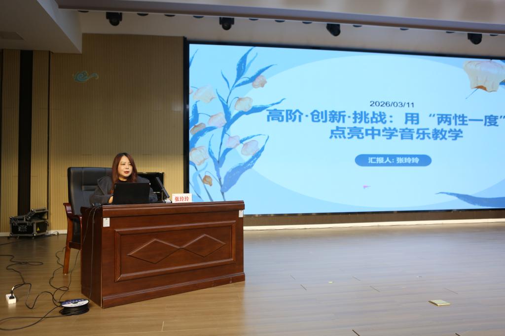 下午2时,我院音乐系主任张玲玲副教授作题为《高阶 创新 挑战:用“两性一度”点亮中学音乐教学》的专家讲座。她从新课标核心要求入手,结合近年中考命题趋势,系统讲解了单元整体教学的设计理念、跨学科融合的实施路径以及备考策略的优化方向。讲座既有前沿理论的深度解读,又有实操案例的细致剖析,为一线教师破解教学困惑、优化备考方案提供了清晰的思路指引。现场教师纷纷表示,讲座内容贴近教学实际、指导性强,受益匪浅。