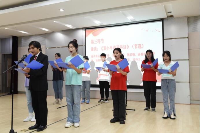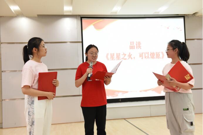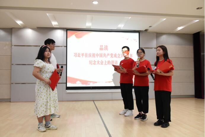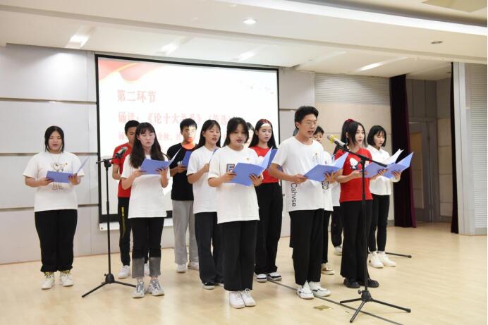 活动分为四个篇章及诵读、品读、心得分享三个环节。学生团队声情并茂诵读红色篇章,与现场学生对诵读内容进行互动问答,并由读书明星分享自己的心得感悟。其中2号选手向海璐以“不惧黑暗只盼国兴”为主题进行品读,她表示作为新时期青年应牢记使命,不忘初心,号召青年一代坚定理想信念,传承党的红色使命,筑梦时代新征程,在党的领导下成为社会主义的建设者。4号选手李润以“学党史,观现实,创未来”为主题分享感悟,她认为青年学子应勇担责任,在新的征程上敢于斗争,努力提升自身素质。