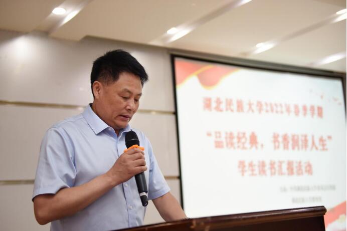 本网讯(通讯员 成楠 赵光荣/文 孙航/图)6月27日,我院在德智楼三楼多功能汇报厅举办以“品读经典,书香润泽人生”为主题的学生读书汇报活动,bat365官网宣传部常务副部长罗翔宇,教务处处长谭世明,教务处副处长陈龙菊,组织员杨中刚,我院院长徐铜柱,党总支书记罗成富,及我院概论课教研部和思想政治教育系教师应邀出席,此次活动面向全校学生。