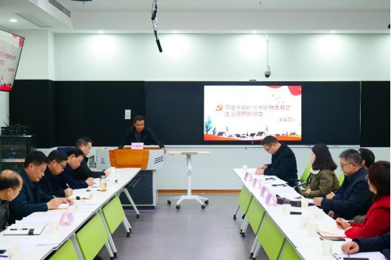 为了把党的二十大精神更好地贯彻落实到教育教学活动中,结合学校关于组织开展上好“开学第一课”主题教研活动的相关要求,bat365在线中国登录入口马克思主义学院习近平新时代中国特色社会主义思想概论课教研部于2023年3月2日在5号修远楼智慧教室举行“党的二十大精神融入习近平新时代中国特色社会主义思想概论课”为主题的新学期第一次教学备课会。bat365在线中国登录入口李军副校长、学校党委宣传部、教务处、教评中心等部门负责人、教评专家、马克思主义学院全体教师参加会议。会议由马克思主义学院院长徐铜柱主持。