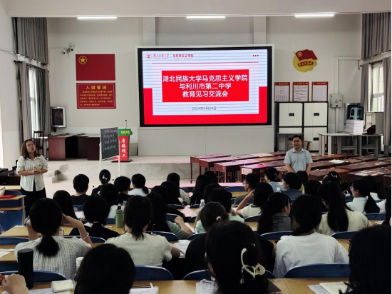 为提升学生师范实践技能,帮助同学们适应未来教育生涯,马克思主义学院于6月24日前往利川市第二中学开展第三次教育见习活动,实地观摩高中政治课堂。本次见习由马克思主义学院教学科科长兰洁、教师向蓉带队,2021级思想政治教育专业全体学生参与。