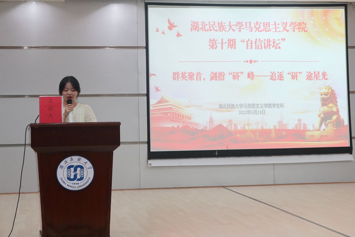 我院举办以“群英聚首,剑指‘研’峰——追逐‘研’途星光”为主题的第十期自信讲坛活动