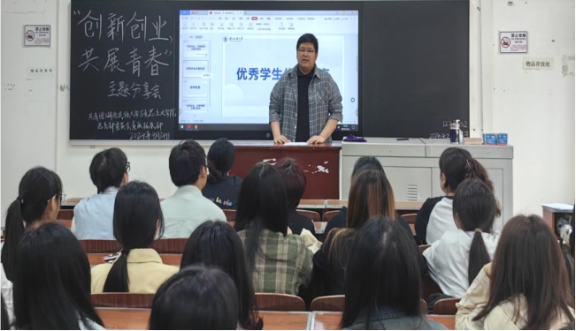 姜素凤从创新创业基本知识出发,立足“大学生创新创业训练计划项目”“中国国际大学生创新大赛”“挑战杯”等创新创业大赛的相关文件要求,为同学们讲解创新创业的理论现实意义以及相关赛事要求。她鼓励大家积极参与学校学院创新创业活动,在创新创业中增长智慧才干,锤炼意志品质。