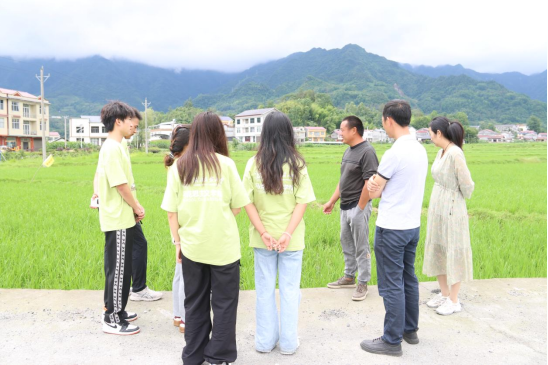 (团队成员在千金村了解“葛稻共生”示范基地)