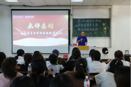 为进一步深入学习贯彻党的二十届三中全会精神,9月27日,我院在德智楼9B210教室举办以“梦绘蓝图展宏图 砥砺奋进新征程”为主题的第二十六期“自信讲坛”活动。本次活动特邀我院副教授宋祖红老师为嘉宾,我院研究生杨稀和本科生赵光荣担任主讲人。我院大一全体学生参与此次活动。