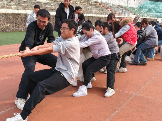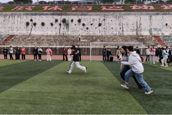 本次活动设置“两人三足”“同心击鼓挑战”“迎面接力跑”“拔河比赛”“零食大作战”五项兼具趣味性与协作性的竞技项目。赛场上,“友谊第一,比赛第二”的信念深植每位同学心中,各班班主任全程参与游戏环节,与学生默契配合、畅快交流。拔河比赛、迎面接力跑环节,每班均派出4名男生与14名女生组队参赛;两人三足项目,每班10组队员分成两队接力比拼;同心击鼓挑战由向驰分别指导三个班级训练;零食大作战环节,各班班主任进入指定区域抓取零食,同学们在场外呐喊助威,现场气氛热烈高涨。紧张的竞技与爽朗的笑声交织,不仅让学生的学习压力烟消云散,更充分展现了班级的集体荣誉感与高效协作力。
