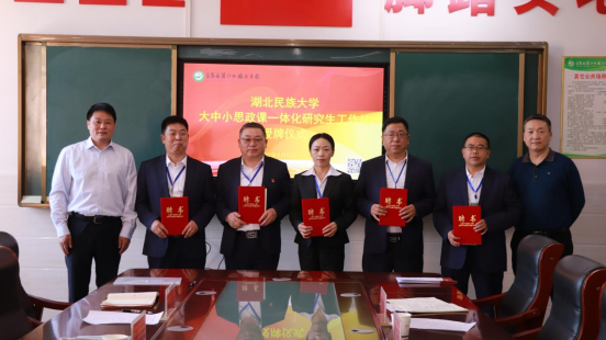2022年5月5日下午,我院与宣恩县清江外国语学校合作建设的大中小思政课一体化研究生工作站正式揭牌。bat365在线中国登录入口马克思主义学院院长徐铜柱、党总支副书记张明波,学校研究生处副处长李伟,宣恩县清江外国语学校校长林鸿与该校领导班子成员、全校政治课教师出席授牌仪式。