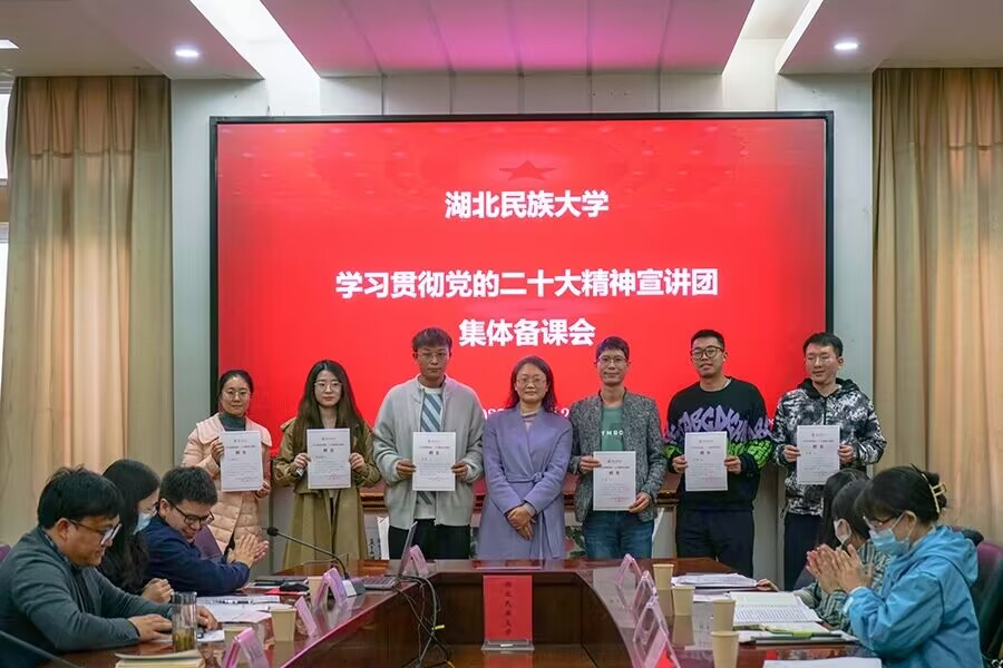 11月23日,bat365在线中国登录入口学习贯彻党的二十大精神宣讲团集体备课会在德智楼三楼会议室举行,学校党委宣讲团和青年宣讲团成员参加会议。