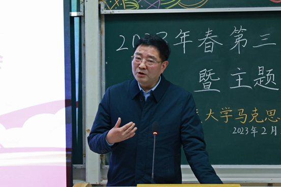活动在庄严的团歌声中拉开帷幕。随后,全体人员观看学校党委书记向前进讲授2023年春季学期“开学第一课”视频《增强信心 提升能力 争做新时代的追梦人》。交流讨论环节,学生侯宇利结合自身成长经历谈奋斗,呼吁与会同学做政治坚定的追梦人、敢于斗争的奋斗者,让青春之梦在奋斗中扬帆起航。教育引导环节。崔应美从青年人的角度出发,号召与会学生树立远大理想,厚植家国情怀,勇担时代重任,用奉献践行青春的誓言。与会老师就学生提出的“思政专业就业方向”、“思政专业怎么去学”等问题作出了细致解答。