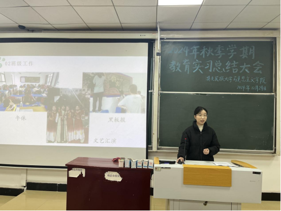 12月24日下午,我院在德智楼9B210教室召开2024年秋季学期教育实习总结大会。我院副院长张胥,思想政治教育系主任梁舒,实习带队老师张少玲参与此次会议。会议由教学科科长兰洁主持,大三、大四全体学生参加此次大会。