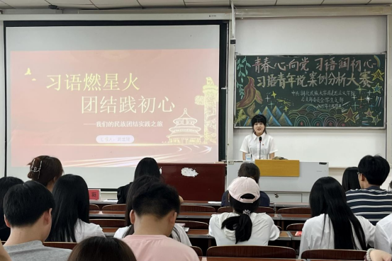 在6分钟限时演讲中,选手们结合自身乡村振兴、志愿服务等实践经历,讲述学习习近平新时代中国特色社会主义思想的感悟收获。4号作品《习语燃星火》负责人武兰琦以“习语燃星火 团结践初心”为题,从民族团结角度出发,结合自身在恩施市芭蕉侗族乡开展社会实践、在巴蜀民俗博物馆了解各民族文化交流史的感悟,表达了作为青年学子铸牢中华民族共同体意识的信心和决心。