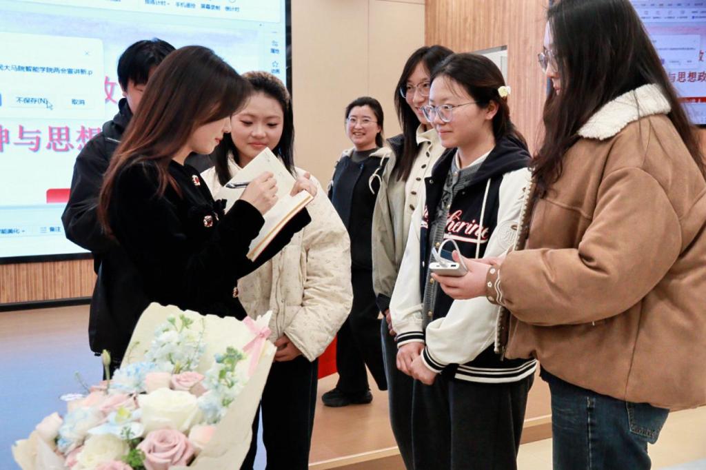 互动环节中,现场学子热情高涨、踊跃提问,围绕个人发展与国家大局的结合、思政课教学创新、青年如何践行两会精神等问题与张琼丽老师深入交流。张琼丽老师耐心细致地逐一解答,强调青年成长无捷径,唯有立足当下、脚踏实地,上好每一堂课、做好每一次实践,在日积月累中锤炼本领,才能真正与时代同频共振。她特别寄语有志从教者,要先内化理论、再融入实践,让思政课走出书本、贴近学生,真正实现立德树人、培根铸魂的育人目标。