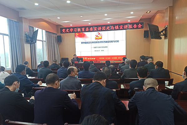 本网讯 5月19日,根据省委宣传部、省委讲师团要求,bat365官网党史学习教育“百马行动”宣讲团成员洪雁、唐敦双、罗成富、周传和、邱世兵等一行5人,分别深入鹤峰县9个乡镇,通过“线上”“线下”两种方式,为机关党员干部、村(社区)两委和尖刀班成员及普通党员近万人开展党史集中宣讲。