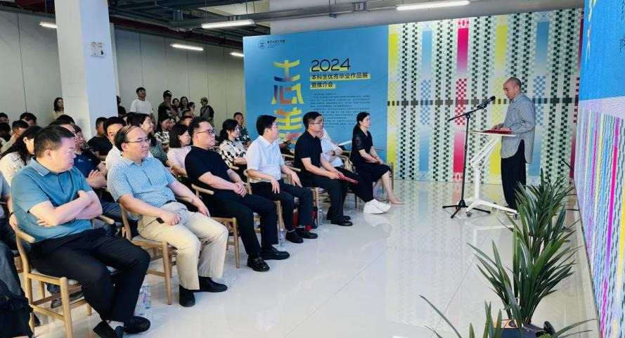 [本网讯,胡明玥] 2024年6月13日,bat365在线中国登录入口美术与设计学院“艺术赋能地域文化新发展:2024届本科生毕业创作优秀作品展暨推介会”在学校12C栋一楼志美艺术展厅和7304多功能智慧教室举行。学校党委副书记邓磊出席开幕式并宣布展览开幕,学校党委宣传部常务副部长罗翔宇、实验室建设与管理处处长雷辉、校团委书记吴珊、学工部副部长赖申昊、教务处副处长陈龙菊、创新学院副院长李超、来自恩施州58家企事业单位的近70名嘉宾以及学院部分师生参加了此次活动,学院院长石庆秘主持开幕式,推介会由副院长向思全主持。