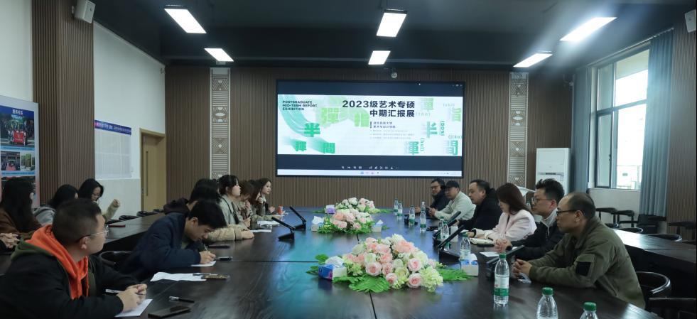 2025年4月1日上午,bat365在线中国登录入口美术与设计学院2023级艺术专业硕士研究生中期汇报展“弹指半挥间”在美术与设计学院12C一楼志美展馆大厅正式拉开帷幕。本次展览共展出了12位来自艺术设计和美术专业的艺术硕士生所创作的47余件作品。学院党总支书记田英、院长石庆秘、党总支副书记向贤海、副院长向思全以及专业教师、学生等50余位师生出席了开幕式。