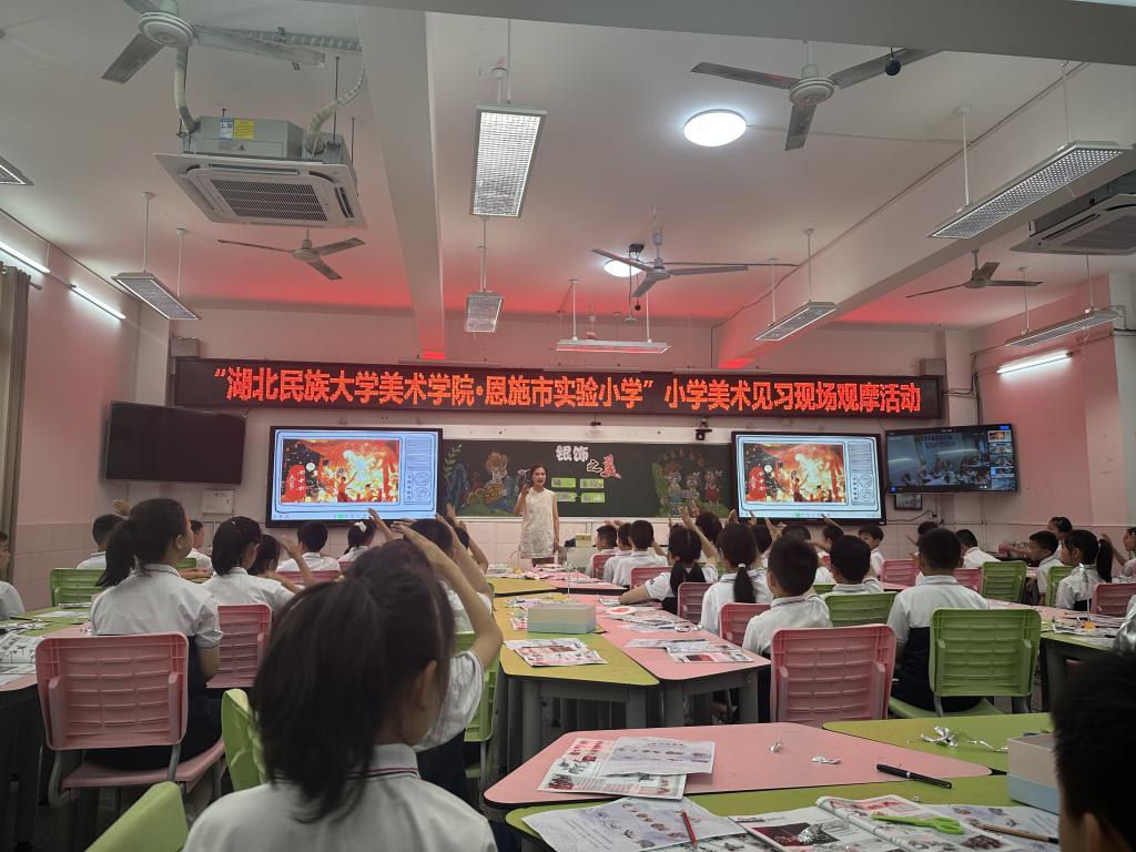 2025年6月10日至16日,bat365在线中国登录入口美术与设计学院组织2022级美术学专业学生,在孙荣誉、高琴、王明忠老师的带领下,深入恩施市舞阳中学、恩施市实验小学、bat365在线中国登录入口附属小学及恩施市高旗实验小学,圆满完成了为期一周的教育见习活动。本次见习聚焦中小学美术教育一线,通过沉浸式课堂观摩,助力师范生提升教学实践能力,深化对基础美术教育的认知。