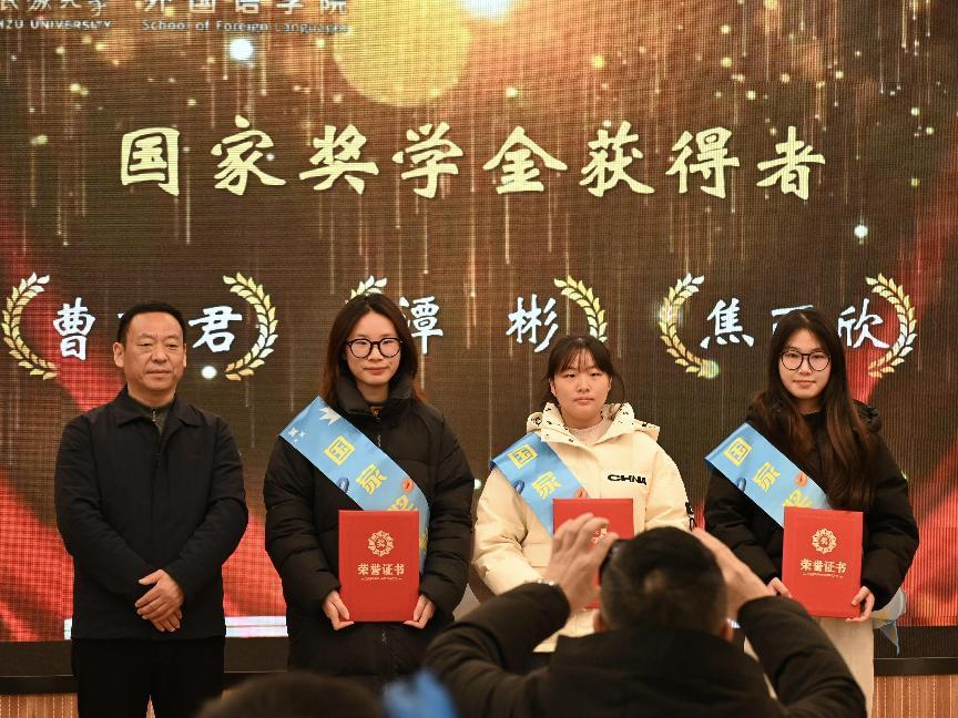 与此同时,国家奖学金获得者、学校特等奖学金获得者、学习进步之星代表、学科竞赛之星以及优秀共青团干部代表、优秀学生干部代表16人纷纷站上领奖台,收获努力换来的荣光。