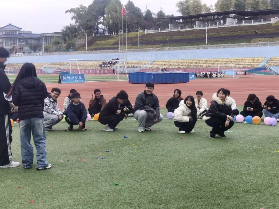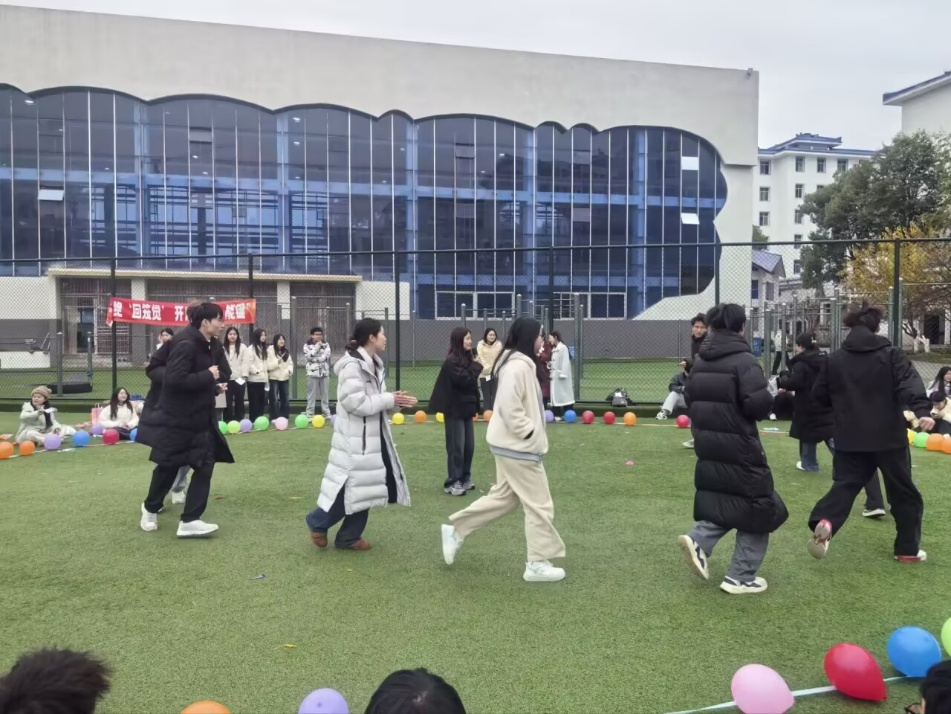 主持人介绍流程并完成点名后,活动在轻松活泼的氛围中正式开始,“踩气球大作战”“反向指令”“五毛一块”等趣味游戏吸引同学们积极参与,现场欢声笑语不断。游戏中配合默契的获胜队伍获得了专属印章作为奖励。