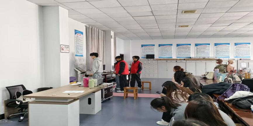 活动前期,工作人员精心完成了场地布置、设备调试与物资筹备等,组建了涵盖登记、检测、引导、数据记录等岗位的工作小组,并开展岗前培训。同时在临时组建的工作群提醒师生检测前的注意事项,为检测数据的准确性打下坚实基础。