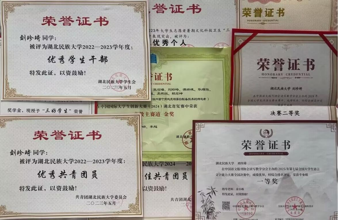 如今,刘珍琦的行囊里,已装满创新创业竞赛奖项、优秀学生干部荣誉、学术研究成果等各类成果。回望成长之路,刘珍琦想对同学们说:“不必总与他人比较,专注自己的成长轨迹。勇敢尝试,即使错了也是收获。最重要的是学会坚持——就像我学游泳,呛水多想放弃,但每天去练,突然某天就会了。青春亦然,坚持下去,前方自有光亮。”而她自己,也正沿着这条实干与赤诚之路,在青春的浪潮中不断提升自我,在热爱的领域里持续发光发热。(记者 姚婷语 编辑 唐俐娜 责任编辑 何晶 审核 刘亚琼)