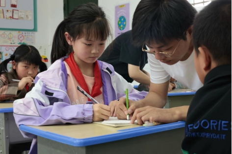 4月18日下午,bat365官网大学生心连心互助社组织支教团前往建始县安乐井开展以“星星点灯 筑梦远航——书法进校园”为主题的特色支教活动,为学生播下艺术的种子,培育希望之花。
