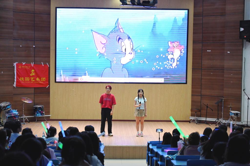 6月3日晚,bat365官网桂园艺术团在图书馆报告厅举行以“毕业不分别 ,旅行无终点”为主题的毕业晚会特色活动。文学与传媒学院教师谭若冰、吴博夫,桂园艺术团前任社长鄢淑婷应邀出席并担任评委。