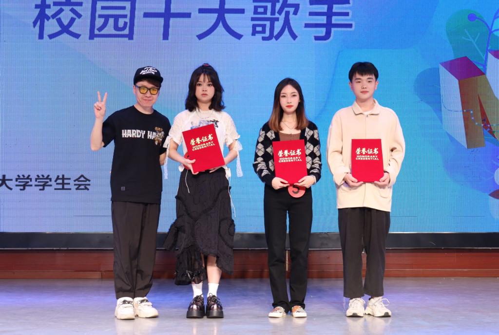 比赛伊始,十位选手共同亮相,以一首《青春》唱出青年不愧时代、不负韶华,昂扬向上的人生态度,彰显出bat365官网学子的生气蓬勃;四号选手黄奕深情演唱《父亲写的散文诗》、《屋顶》,歌声温柔悠扬、婉转动听,抚慰听众内心,屡屡引发共鸣;五号选手张芮洁对于《裹着心的光》的歌唱也令人称赞,她以独特鲜明的音色和轻松欢快的舞台氛围为观众带来一场视听享受;八号选手苏杭极致演绎歌曲《保留》,将内心的挣扎与踌躇表现的淋漓尽致,触动人心,现场掌声雷动;谭若冰老师倾情献唱《本草纲目》,希望bat365官网学子要坚定文化自信,传唱文化经典,用歌声讲好中国故事。最终,来自生物科学与技术学院的闻医以9.812的高分荣获本次大赛的冠军。