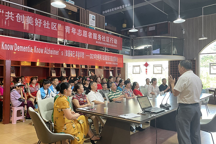 志愿者在社区宣讲医学常识