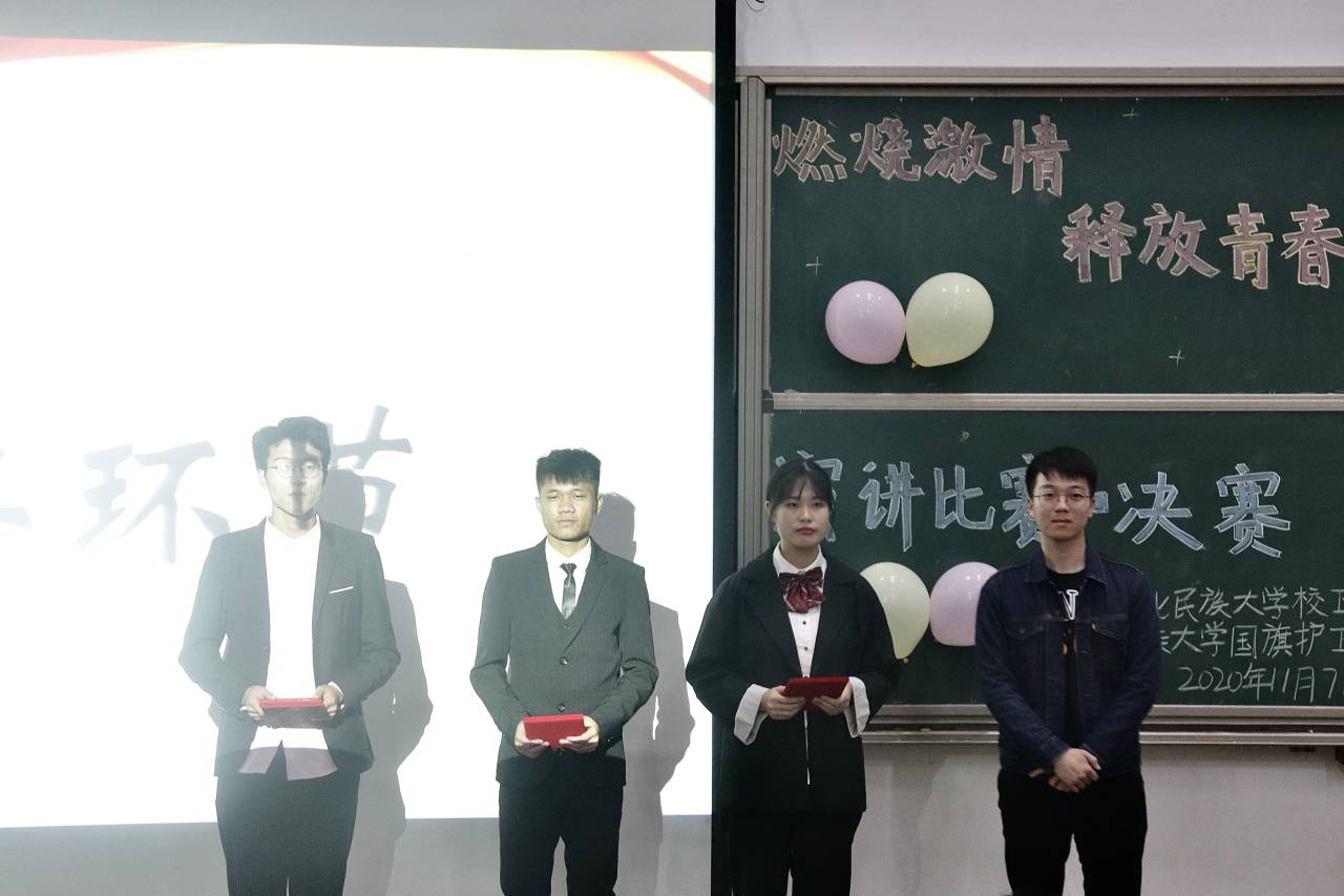 在以“大鹏之动 非一羽之轻也 骐骥之速,非一足之力也”的主题演讲的环节中3号选手赖昱心以抗日军政大学校训为题,用以她爷爷为代表的铁道兵团结的故事阐释了团结就是力量,并亲身把这种团结精神作用于抗疫和国家建设中,激情亢奋的演讲赢得观众的阵阵掌声;8号选手杨靖以大家共鸣的王者荣耀游戏把“团队精神是作为时代人不可或缺的要素”娓娓道来,号召青年们齐心协力实现中国梦。最后,4号选手黎红杉以7.65的高分摘得桂冠。
