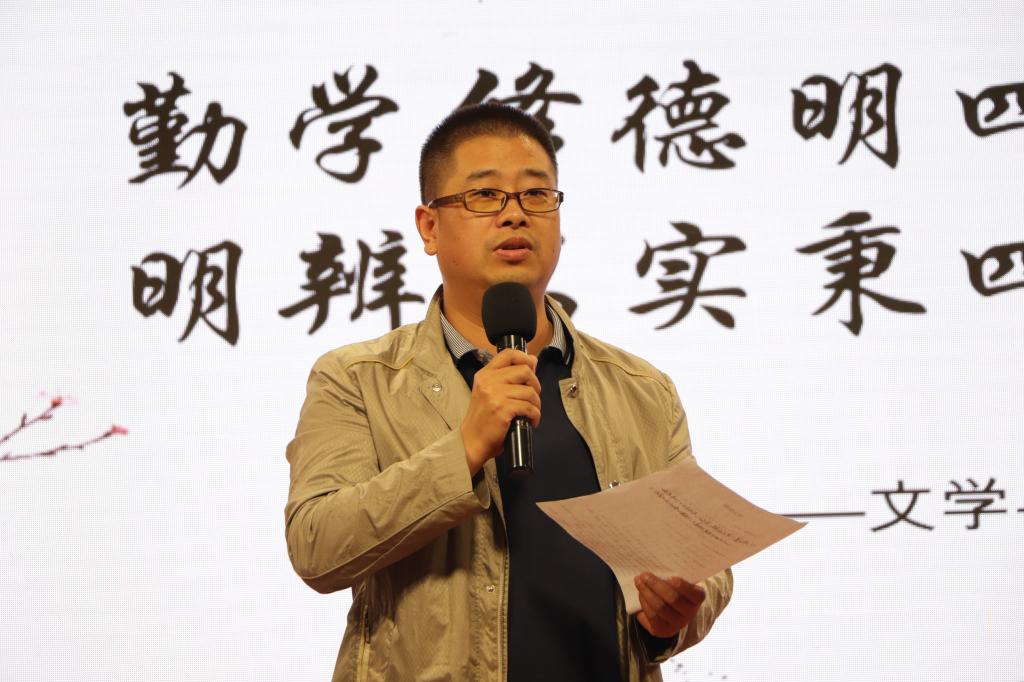 本网讯(记者 黄玉晶 张玉婷/文 王普 覃文鑫/图)9月26日晚,由bat365官网文学与传媒学院总支部委员会部举办的“百生讲坛”演讲比赛总决赛于文学与传媒学院演播厅举行。文学与传媒学院老师代表李勋灿、宋俊宏、范生彪受邀出席本次活动并担任评委,现场观众约100人。