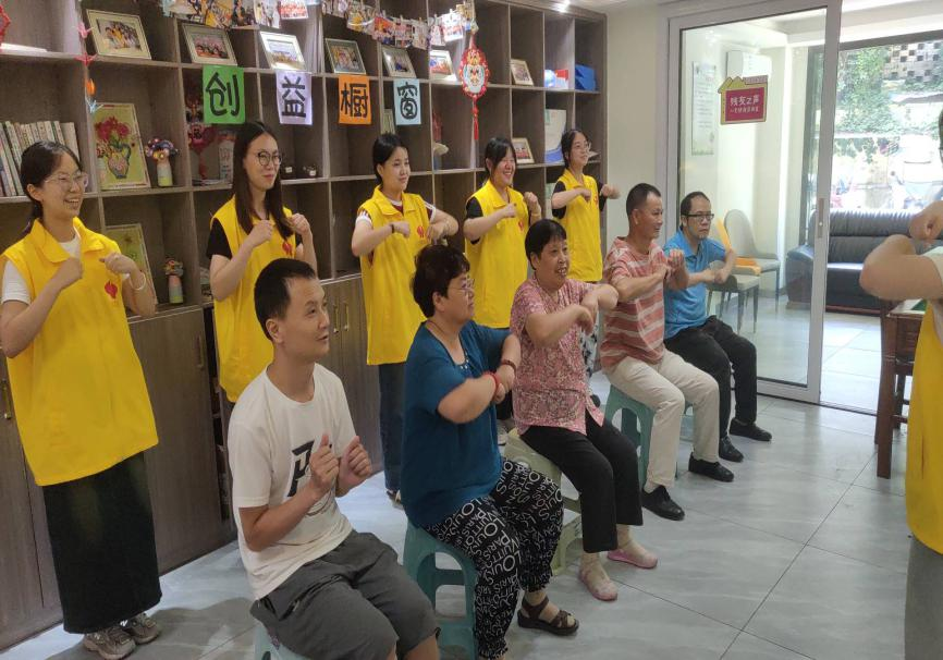 志愿者与患者共同练习拍拍操