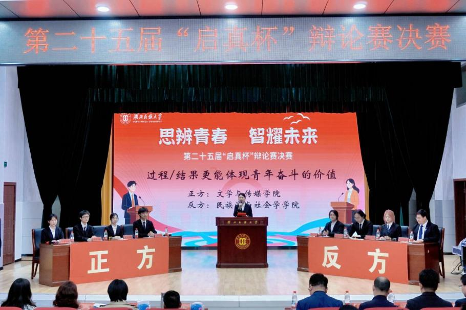 本届辩论赛自3月开赛,历时一个月,吸引了来自16个学院的80余名辩手参赛。经过8场初赛、4场复赛、2场半决赛的激烈角逐,文学与传媒学院与民族学与社会学学院最终会师决赛。决赛现场,双方围绕“过程/结果更能体现青年奋斗的价值”这一辩题展开激烈交锋。