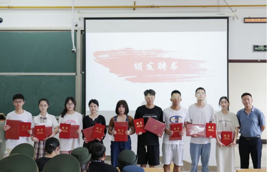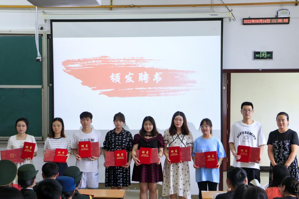 会议伊始,雷鹏宣读各学生组织新一届任职名单,各位老师为其颁发聘书并合影留念。校团委各组织学生干部代表发言,他们回忆在过去一年担任学生干部的经历,对老师们耐心指导表示感谢,希望下一届学生干部能够勇担重任,砥砺前行。