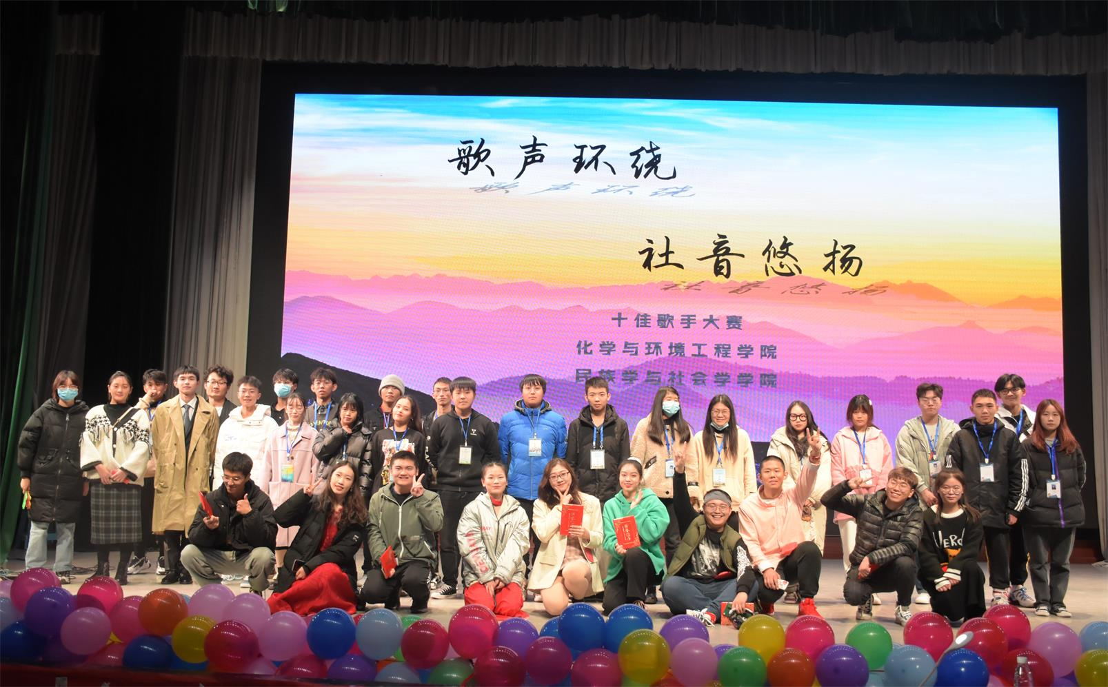 本网讯(见习记者 王丽 张梦婷 周树洋/文 肖欣 鲁心雨/图 )为丰富大学生业余生活,展现大学生蓬勃向上的精神风貌,11月30日,我院联合化学与环境工程学院于音舞演播厅举办“歌声环绕,社音悠扬”化环民社十佳歌手大赛决赛。化学与环境工程学院学生科副科长张艺馨老师,我院办公室张雯老师,我院团总支书记熊霞老师,化学与环境工程学院彭召元老师,心理咨询中心朱慧老师应邀出席活动并担任本次比赛评委。