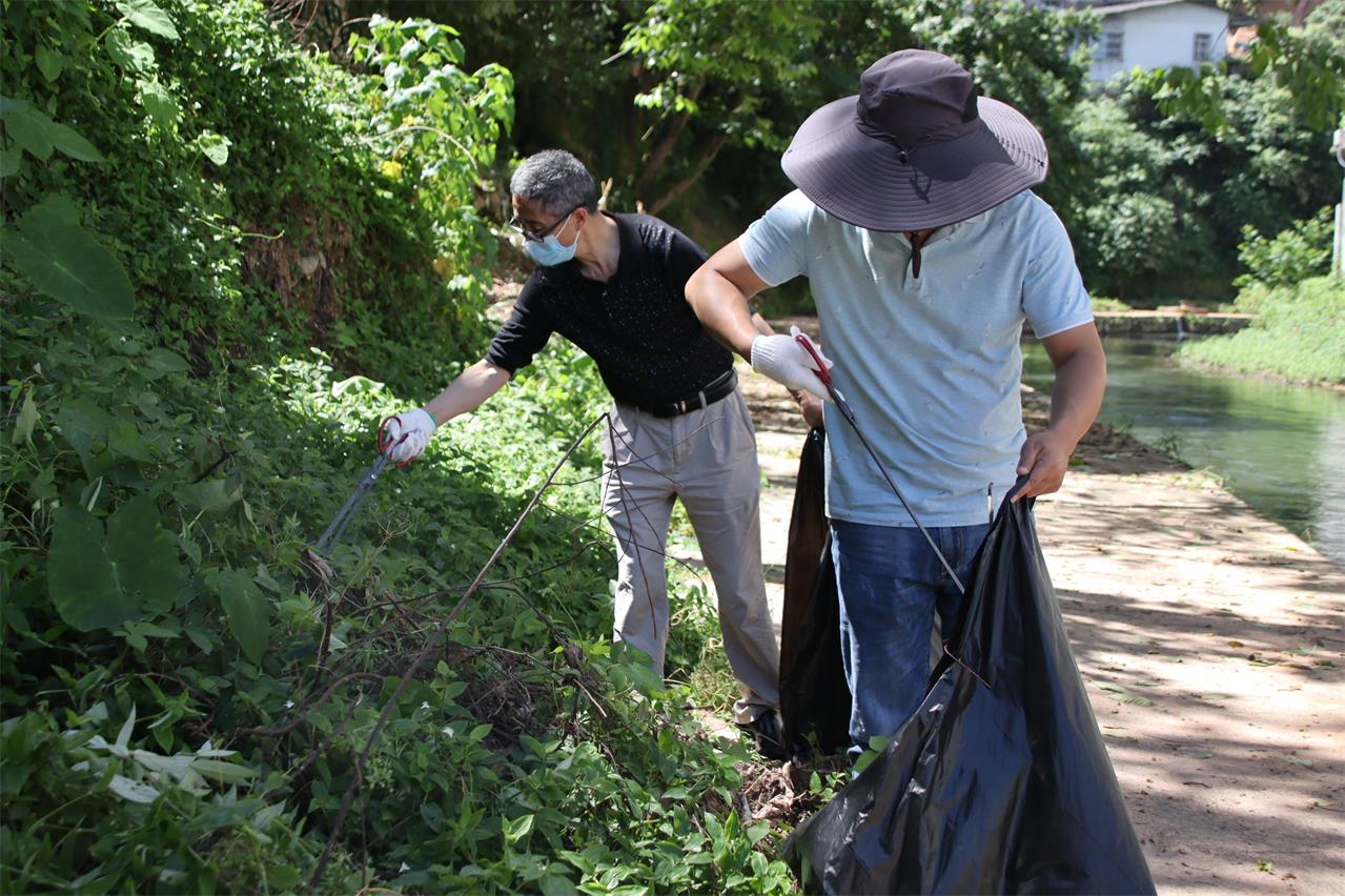 活动伊始,参与活动的志愿者在东源锦华苑小区与社区负责人汇合后共同前往龙洞河。随后,参与活动的志愿者以组为单位领取和分发劳动工具,并在各组负责人领导下展开河道清理服务。在清扫过程中,志愿者相互配合,齐心协力,积极开展志愿服务,实现河道及其附近民居细致的垃圾清扫,充分诠释出“奉献,友爱,互助,进步”的志愿者精神,对于环境美化具有重要意义。