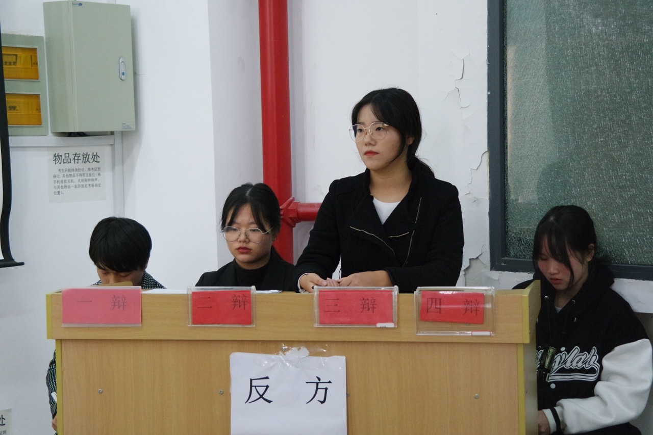 本网讯(记者 谌海容 陈慧超/文 卢子畅 董金科/图)为提升学生思维表达能力,促进学院学风建设,12月2日,我院学生会学风建设部于修远楼5A502教室开展大一大二年级辩论友谊赛。我院学生建设科科长潘华云、学生建设科副科长赵慧翔、大二社会学班主任杜鹏博士、团总支书记熊霞受邀出席本次比赛并担任评委,我院全体大一新生参加此次活动。