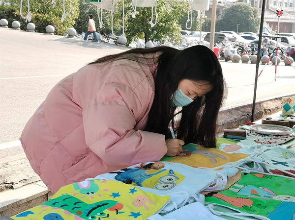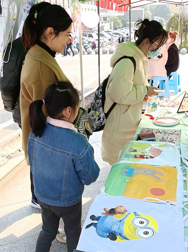 本网讯(记者 欧阳洁/文 见习记者 董金科 陈舒琦/图)为迎接第35个国际志愿者日,号召学生志愿者为山区儿童献出爱心,12月4日至5日,我院社会实践与志愿者工作部联合美术与设计学院社会实践与志愿者工作部在大学生广场、西苑食堂门口举办以“用心支持义卖,用爱温暖童心”为主题的手工义卖活动,我院共十二名志愿者参与本次活动。