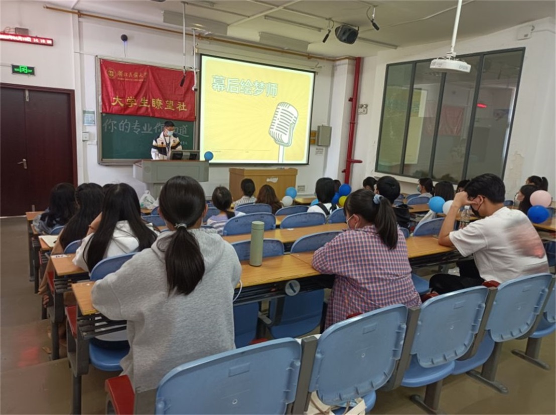 活动在主持人的介绍中拉开序幕,来自文学与传媒学院的陈巧玉以“幕后绘梦者”为主题进行演讲。她以第七艺术之称的电影作为开端,对广播电视编导专业进行具体分析,称其为游荡在文化与艺术之间的职业。通过讲述走上这条道路的原因与经历,她向大家展示了热爱与职业重合所带来的美好蓝图,使在座学生对于其专业的了解不止局限于表面。紧接着,来自林学园艺学院的刘娇以“美好蓝图缔造者”为主题进行演讲。她分别从专业简介、工作原则、对专业的理解三方面进行分析。解析其专业目前的就业方向与就业形势,并用全新眼光看待其专业为社会发展做出的贡献。活动进行到中后期,进入了“看图猜成语”主题游戏环节。由主持人放映图片学生进行作答并对答对者分发礼品,不仅让参与者感受活动之乐趣,同时促进了行业文化的传播。最后,王成吉为在场人员介绍医学生涯流程图,指出培养一个医学生的不易,并表示自己热爱这个专业,希望自己能够不断努力,学好这个专业。
