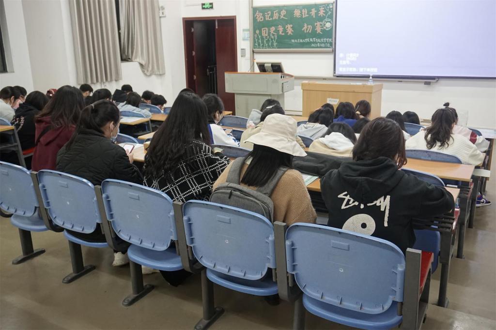 本网讯(记者 欧阳洁 见习记者 谌海容/文 记者 鲁心雨 见习记者 卢子畅/图)为增进我院学生对团史的了解,迎接中国共产主义青年团的百年诞辰,我院团总支组织纪检部、社团管理部联合学生会学风建设部举行以“铭记历史,继往开来”为主题的团史知识竞赛,4月17日在修远楼5A505教室与5A506教室举行初赛。我院全体大一、大二学生参与比赛。决赛将于月底进行。