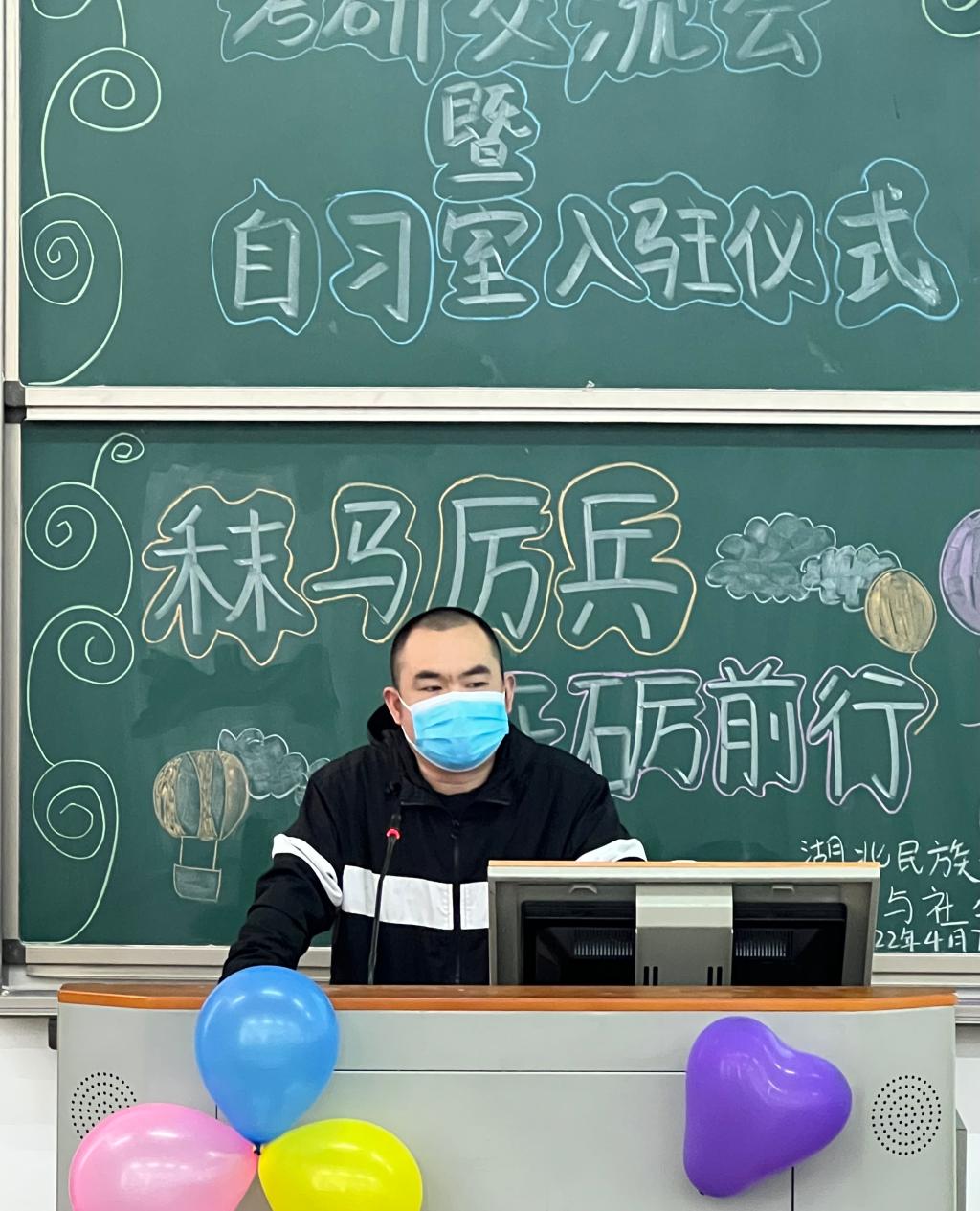 本网讯(见习记者 谌海容 付欣淼/文 卢子畅 陈诺/图)为提高我院学生对考研知识更深层次的了解,明确考研目标和方向,4月7日,我院团总支宣传部和学生会宣传与语言工作部于修远楼5A505教室共同举办以“秣马厉兵,砥砺前行”为主题的考研交流会暨“尚岸”自习室入驻仪式。我院党总支副书记杨洪林老师,周书刚老师、汪黎老师受邀出席本次活动,熊霞老师主持召开会议,我院部分学生参加此次活动。