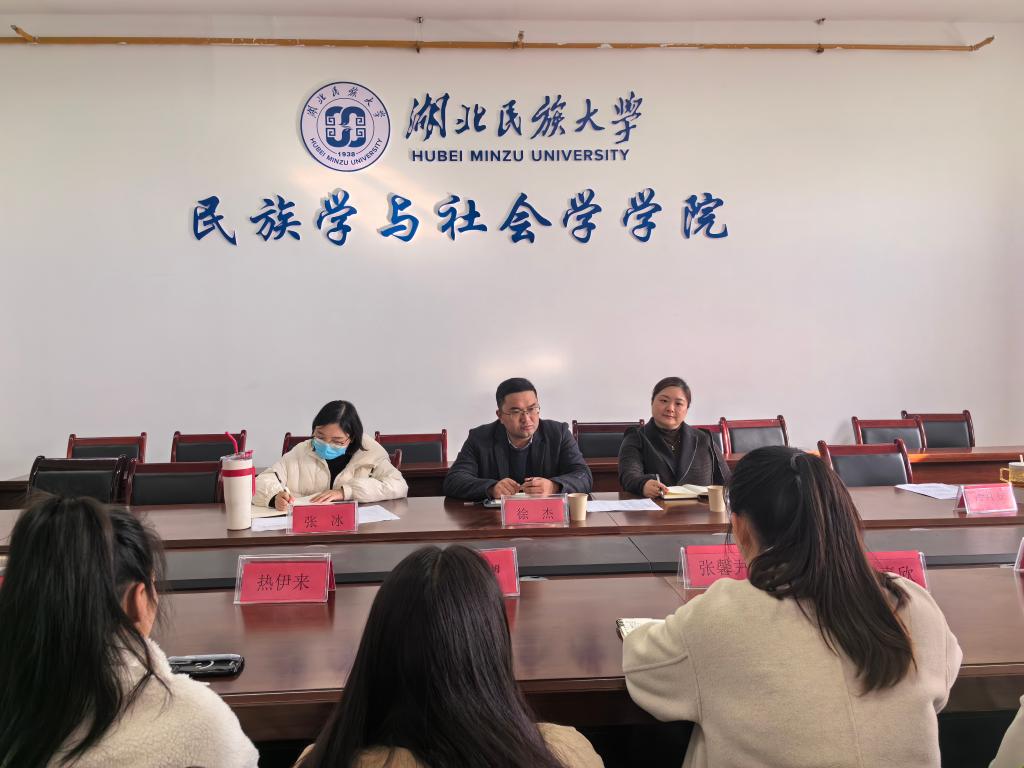 会议伊始,张冰介绍出席本次活动的嘉宾。随后,冷红豆领学了有关我国民族工作的理论知识:《习近平论民族和宗教工作(2023年)》《习近平论爱国统一战线(2023年)》。接着,学校特等奖学金获得者、来自蒙古族的张馨尹同学从确立自身学习目标、寻找适合自己的学习计划与方法以及认清学习的本质三方面展开学习经验的分享。申莉介绍民社学院暖冬行动——资助困难少数民族学生返乡活动实施方案。接下来,同学们一一简要汇报了在校期间的学习生活情况,与会老师进行亲切交流,会场氛围轻松和谐。